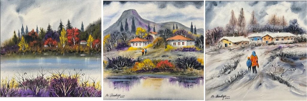 Usta ressamlarımızdan Ersan Çetin; ”Yahu Orhan bu kadar tabloyu ne zaman çizdin?” diye sorarken hemen hepsi 2026 yılı imzalı tablolardan gözünü alamıyor, şaşkınlığını gizleyemiyordu.