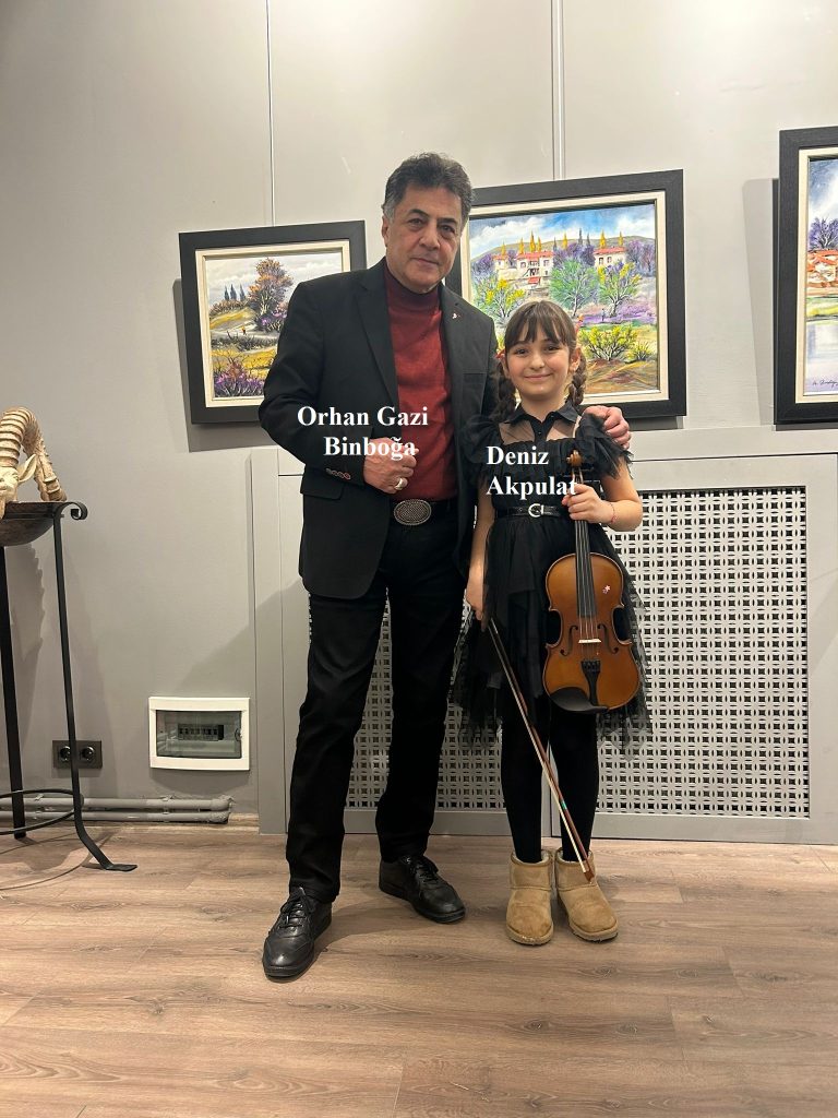 Geceyi kemanıyla bize nefis bir müzik ziyafeti çeken Deniz Akpulat sonlandırdı. Sanatçı dedenin, büyük annenin ve annenin yoğurduğu, emek verdiği Deniz ikinci parçasının sonunda Binboğa amcasına; “ Her sergide bir parça seslendirirdim fakat sizin için iki parça yorumladım” diyerek ona sevgisi ifade ederken alkış yağmuruna tutuluyordu…